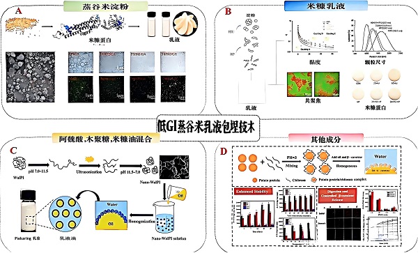 全谷物米因保留皮层和胚芽,营养价值较高,但存在蒸煮时间长、口感偏硬等问题。团队尝试将蒸谷米工艺应用于全谷物加工,通过浸泡和汽蒸处理软化皮层,改善食用品质。实验室条件下,研究人员比较了不同浸泡液配方和蒸煮时间对产品复水性和感官评分的影响。