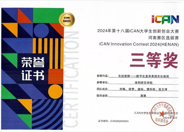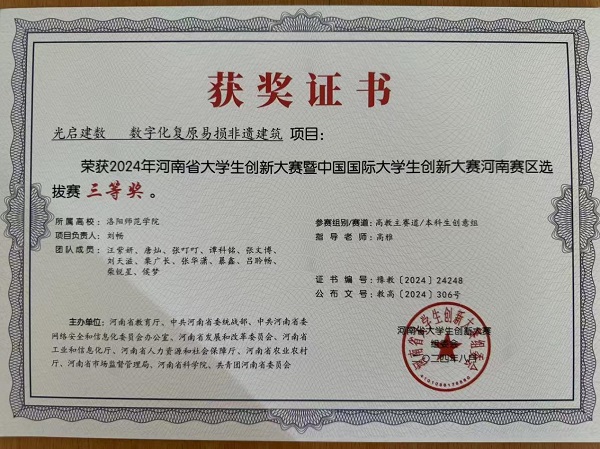 ​从千年木构到云端复刻,国家级文化遗产——古建筑,正借助数字技术与创新业态焕发新生。“古建今辉”团队打造的古建筑数字化保护项目,以“采-修-传-用”全流程模式为核心,通过科技赋能文保、数字融合文旅,破解古建筑保护面临的“修复难、展示难、传承难”等难题。该项目更凭借亮眼成绩斩获中国国际大学生创新大赛河南赛区选拔赛三等奖、第十八届iCAN大学生创新创业大赛河南赛区选拔赛三等奖等多项荣誉。
