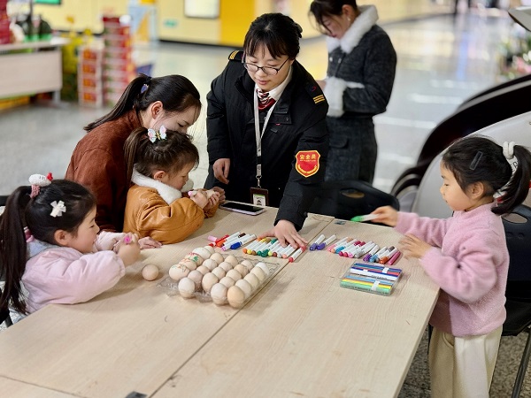 春分到,蛋儿俏。为传承传统节气文化,践行“江南雅韵,精致服务”服务理念,3月14日下午,苏州地铁4号线流虹路区域苏州湾东站,开展“春分画蛋,绘享春光”主题活动,让乘客在趣味体验中感受春日美好与地铁服务温度。 活动现场,工作人员备好鸡蛋、画笔等材料,细致讲解“春分立蛋”民俗渊源、画蛋技巧与安全事项。乘客们踊跃参与,挥笔创作,将春日景致绘于蛋壳,把美好期许藏于蛋中,现场洋溢着欢乐的春日氛围。