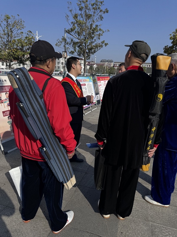 二、广场展台广覆盖,宣传折页送身边 在城区体育场设置反假金融知识宣传展台,悬挂宣传横幅、摆放宣传展板,向过往市民、商户、老年人等群体免费发放反假货币宣传折页、金融消保手册。工作人员一对一讲解假币识别方法、常见假币诈骗套路、拒收现金整治、反假货币法律法规等内容,现场答疑解惑,引导市民主动抵制假币、发现假币及时上交银行或报警。通过“面对面、零距离”的集中宣传,扩大知识覆盖面,营造人人识假、人人反假的良好社会氛围。