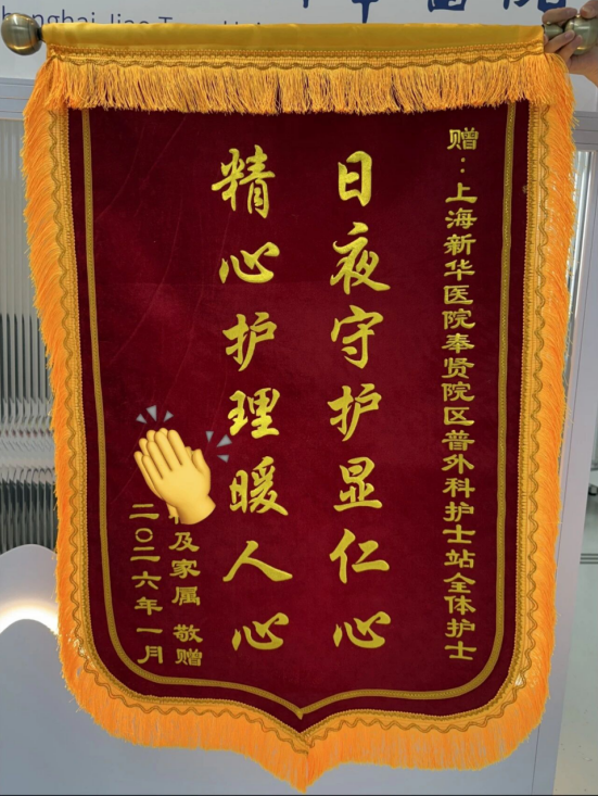 在每一面锦旗背后,诉说的是患者及家属的感激之情。在这一份份的肯定背后,是对奉贤院区8楼西病区医护团队辛勤付出的认可和嘉奖。