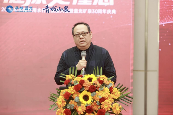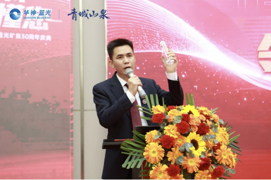 一、初心不改:从一口矿泉到万家信赖到守正创新 庆典在国歌中热烈庄重的氛围中拉开序幕。华神科技董事长黄明良深情回顾企业发展历程:从青城山脚下的一口矿泉起步,历经三十年深耕,如今已走进千家万户,成为四川饮用水行业的标杆品牌。 他向行业前辈致以敬意,向一路同行的合作伙伴表示感谢,并强调“信任重于千钧”。面向未来,华神·蓝光将坚守“健康守门人”与“创新先行者”定位,聚合产业力量,共塑川水品牌,以守正创新之姿,共绘川水新未来。 “30年只是一个新起点,未来三十年,我们携手再出发!”