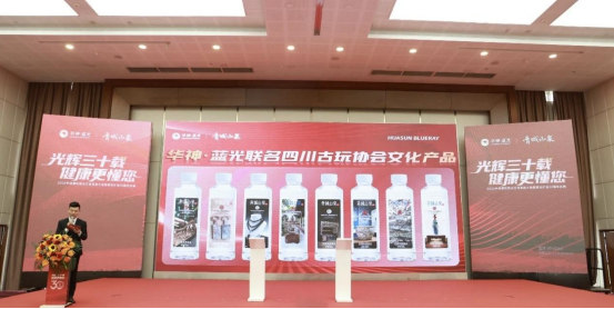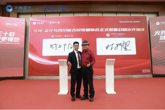· 4大特性:聚焦高偏硅酸核心优势 · 6大健康益处:涵盖婴幼儿补钙、美容养颜等 · 8大饮水场景:健康养生全面覆盖家庭日常饮水高品质需求 华神·蓝光邛崃基地水源偏硅酸含量远超国家标准2—3倍,协会将与企业携手推进“健康养生水”认证,让优质天然水源更好地惠及大众。 四、跨界融合:构建“水+文化+地标+产业”新生态 庆典现场,华神·蓝光与四川省古玩收藏协会达成战略合作,八款亿元级藏家精品与青城山泉深度联动,以水为媒,让文化与品质相融共生。