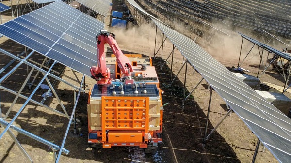 项目自2025年8月开工以来,建设者们克服高寒高海拔环境带来的诸多挑战,全力推进工程建设。为进一步提升施工效率与质量,项目在全区率先引入智能光伏机器人进行组件铺装,实现了高原光伏建设的技术突破。作为项目一标段承建方,中建二局施工负责人李平介绍:“目前,叉车、装载机等各类施工设备已全面完成调试,正式投入施工现场作业;同时,项目首次应用智能安装机器人,采用远程操控与无人机巡检,实现智能化施工,加快项目建设进度。”