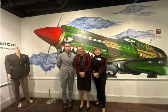 当地时间2026年1月19日,由华盛顿特区中国美国博物馆(Chinese American Museum)联合陈纳德航空与军事博物馆(Chennault Aviation & Military Museum)共同策划的《为和平而翱翔》(《Soaring for Peace》)飞虎队纪念展在华盛顿华人博物馆隆重开幕。这次展览中,受邀艺术家李淑宇(Lucia Shuyu Li)的跨学科壁画创作,成为当代艺术接入历史叙事的点睛之笔。作品中,艺术家以独特的视觉语言打破传统历史展示的单一视角,将飞虎队的战争记忆、中美并肩的友谊,以及和平愿景转化为可被当代观众沉浸式感知的艺术现场,为这段跨洋交流的历史赋予了全新的当代表达。