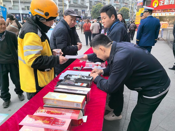 图为工作人员向消费者发放宣传手册 适逢“3·15”国际消费者权益日,铜仁松桃县烟草专卖局(分公司)专卖队伍及普法志愿者们在松桃县城开展了一场如火如荼的“3·15”普法宣传活动。 随着时间的流逝,广场渐渐苏醒,咨询台前人头攒动,一份早点伴随着一声“您好!您的外卖订单”引入眼帘,普法宣传队立刻递上一份宣传手册回应到“您好!您的普法手册”,针对常见的一些问题陷阱,工作人员向他一一解答。 本次活动,松桃县局(分公司)除了设置“真假卷烟对比台”,还聚焦网络购物陷阱、AI虚假信息、未成年人保护等内容,生动形象地向过往的消费者讲解、演示。“以前总觉得视频都是真的,今天一看,网络还是太多陷阱了!”市民龙先生感慨道。