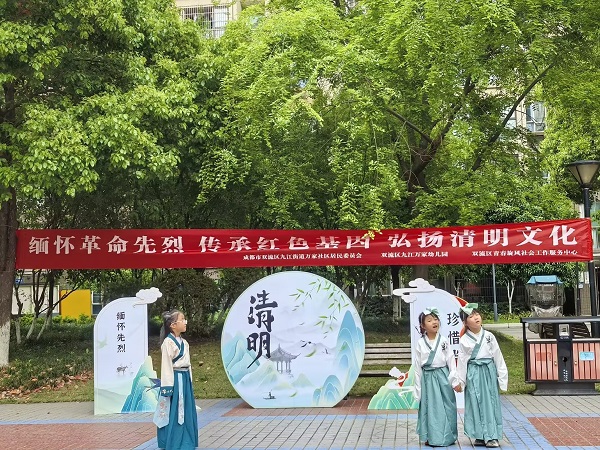 清明时节,追思悠悠。为缅怀革命先辈、传承红色基因,让幼儿亲身感受清明节的浓厚文化氛围,成都市双流区九江万家幼儿园于近日围绕幼儿的发展特点,精心组织了清明节系列主题活动。小班、中班、大班分别以“手作寻春”“习俗体验”“红色演绎”为主线,在亲子互动与仪式教育中传承清明文化。 围绕弘扬中华优秀传统文化,小班组以“踏青、植绿、手作”为关键词,邀请家长入园开展亲子干花粘贴体验活动。孩子们在家长陪伴下,用采集的干花、树叶拼贴出心中的春日景象。在指尖创作中,幼儿感知了清明时节万物生长的自然之美,也迈出了亲近传统的第一步。 中班组聚焦清明传统习俗,带领幼儿与家长一起体验清明节的文化内涵,并开展了制作青团、趣味投壶、趣味捶丸等活动。揉面、包馅,青团飘香;投壶、捶丸,古风盎然。在动手操作与趣味游戏中,孩子们不仅锻炼了手眼协调,更在欢声笑语中记住了清明特有的民俗符号。 大班组则承担起红色精神传承的重任,以幼儿园与社区联动的形式,走进社区、融入社会,将优秀传统文化与红色基因带到群众身边。孩子们用真挚的情感、多样的艺术形式,在社区舞台上展现新时代幼儿的精神风貌,在实践体验中厚植爱国情怀、涵养感恩之心,让爱国与传承的种子在幼小的心田里生根发芽。 此次活动将红色教育与传统节日文化有机融合,让孩子们懂得今日幸福生活来之不易,并在心中播下爱国与感恩的种子。幼儿园将继续以节日为契机,深化家园共育,助力幼儿健康成长。