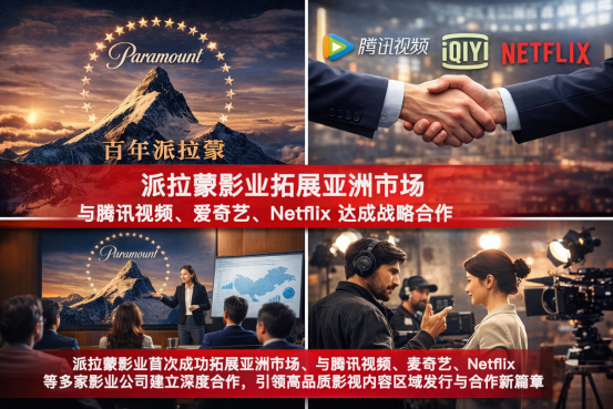 派拉蒙影业 宣布,公司在亚洲市场的首次推广与业务拓展取得圆满成功,并已与多家行业领先的视频平台及影视机构建立合作关系,其中包括 腾讯视频、爱奇艺 以及国际流媒体平台 Netflix。此次合作标志着派拉蒙影业在亚洲市场战略布局迈出了重要一步。