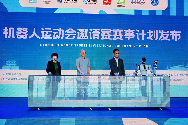 同时,中建华夏运营联合北京奥林匹克文化促进会,成功发布并启动机器人运动会邀请赛。该赛事将于今年下半年面向全国高校正式启动,是世界机器人运动会的实战练兵与实景预演,更是台州引才聚智的重要桥梁。由北京奥林匹克文化促进会会长夏斯均、阿加西先生、中建华夏运营执行董事刘云晖与创新一号大街的银河机器人等共同参与启动,以“体育+科技”为核心方向,打造国际化、智能化创新赛事IP,为创新一号大街注入强劲科创动能。 本次活动的成功举办,充分彰显中建华夏运营在国际 IP引进、产业运营、大型赛事活动承办、体育科创融合等领域的综合实力与专业能力。未来,中建华夏运营将持续发挥资源整合与专业运营优势,深度参与台州湾新区创新一号大街建设运营,助力新区集聚更多国际高端资源,打造全国领先的国际体育科创产业高地,共筑“国际运动聚湾芯,科创大街树新篇”的发展蓝图。