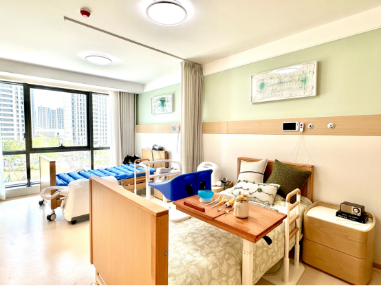作为高端养老,细节真的戳人!房间都是朝南的大户型,宽敞明亮,配备的都是适老化高端设施,电动护理床、全自动洗衣机、直饮水一应俱全,连卫生间都做了防滑和扶手,处处都是贴心设计。