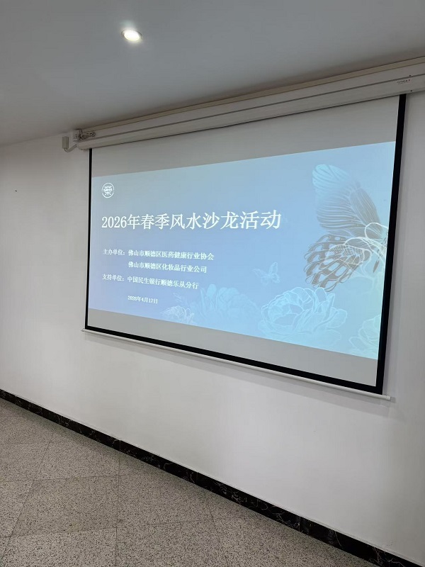 2026年4月17日,由佛山市顺德区医药健康行业协会、佛山市顺德区化妆品行业公司联合主办,民生银行顺德乐从分行支持的“2026年春季风水沙龙”在顺德区隆重举行。本次活动以“顺时而行·借势而进”为主题,特邀国学研究者陈靖韬先生作专题演讲,吸引了来自医药健康、化妆品及金融等行业的近百位代表参与,现场气氛热烈。