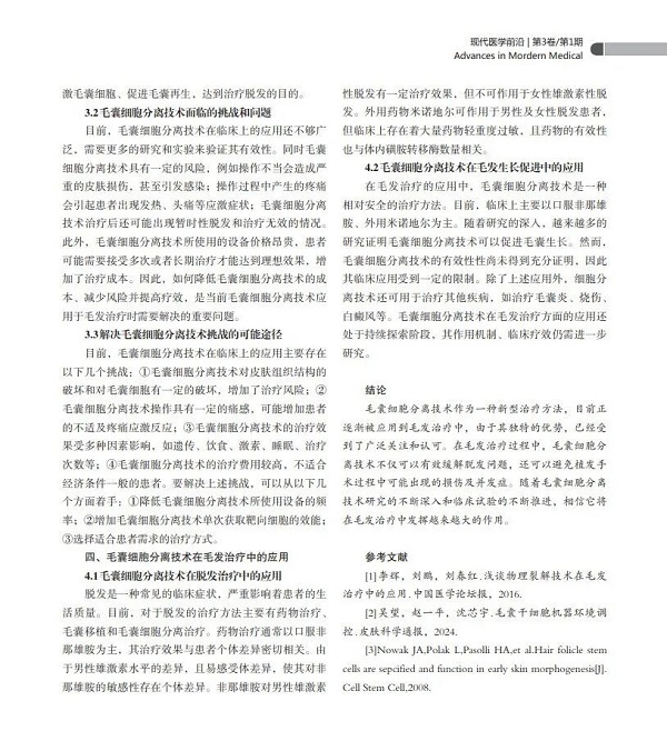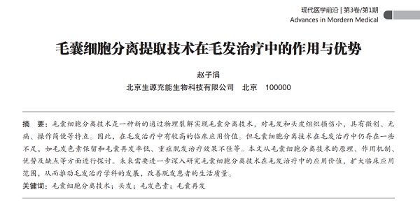 从“行业开拓者”到“国际标杆”,HBW团队深耕五年。今日,随着一项重磅学术论文的发表,中国毛发再生技术正式在世界医学舞台“硬核”亮相。 一、破圈!中国技术闪耀国际学术舞台 2025年,毛发医学界传来振奋人心的消息。 HBW毛囊治疗医师团代表赵子涓女士撰写的学术论文——《毛囊细胞分离提取技术在毛发治疗中的作用与优势》,正式发表于国际知名医学期刊《现代医学前沿》(Frontiers in Modern Medicine,ISSN:3029-1100)。