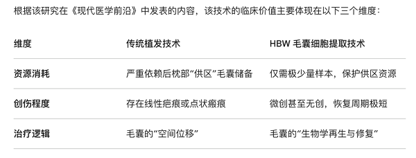 凭借扎实的数据与卓越的效果,HBW曾两次获得《人民日报》等主流媒体的深度报道。如今,这篇论文的发表,标志着我们不仅拥有了“技术”,更拥有了定义国际技术标准的“话语权”。 三、深度解码:为何这项技术能改写“脱发逻辑”? 传统的脱发治疗往往是“拆东墙补西墙”(如传统植发),或者长期依赖药物。而HBW毛囊治疗技术则彻底改写了底层的治疗方案。 赵子涓女士在文中指出,该技术具备三大颠覆性优势: 1.微创且护源:极大地减少了对供体区(后脑勺)毛囊组织的破坏,保护珍贵的毛囊资源。 2.细胞级赋能:通过补充受损区的毛囊细胞,直接激活原本“休眠”的毛囊,促进二次发育。 3.长效再生:相比传统方案,它更强调头皮微环境的修复,实现真正的长效生发。