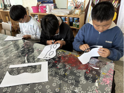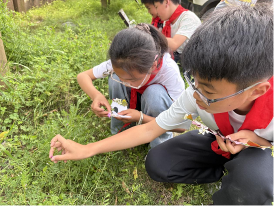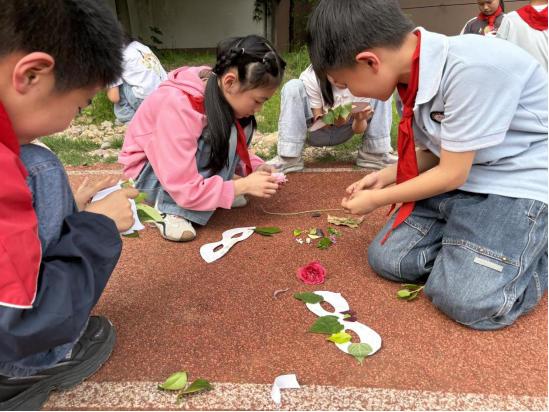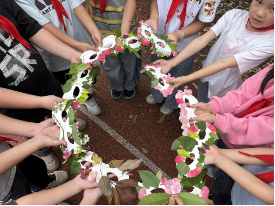 活动伊始,老师向孩子们介绍了谷雨的节气知识:作为春天的最后一个节气,谷雨意味着寒潮结束、万物生长,是告别春日、迎接夏日的过渡节点。而学校的蓝天农场和校园角落,还留存着春日的鲜活痕迹,这也成了本次活动最天然的“素材库”。 孩子们迫不及待地开启了创作之旅:先动手勾勒面具的基础轮廓,再带着空白面具走进农场、操场,捡拾飘落的树叶、盛放的小花、柔软的草茎这些春日元素。每一片叶子的纹路、每一朵小花的色彩,都是春天赠予的独特礼物。