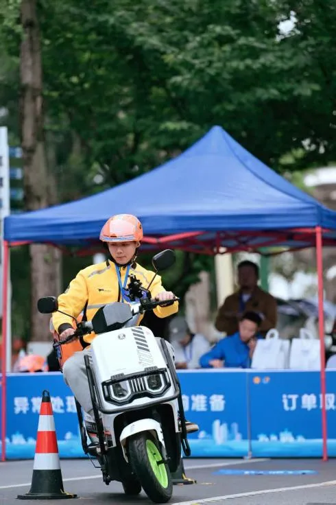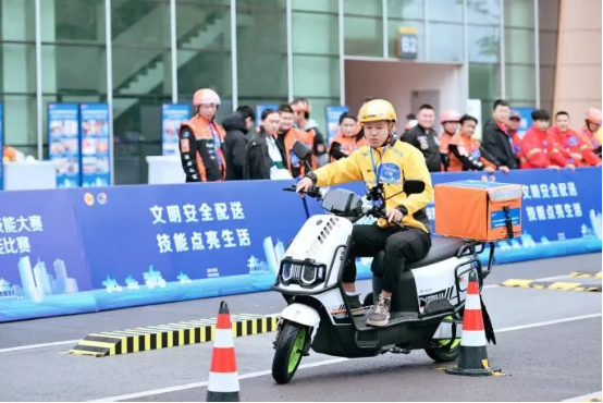 本次赛事吸引了美团外卖、京东秒送、淘宝闪购等多家平台企业的60余名网约配送员报名参赛。比赛设置理论考试与实操比拼两大环节,全方位考核参赛选手交通法律法规、行业服务规范、食品安全常识、突发事件应急处置等综合素养,同步检验路线规划、车辆操控、高效配送等一线实战能力,以赛促学、以赛促练、以赛促提升。