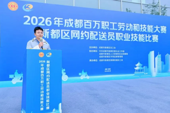 为深入推进新就业形态劳动者技能提升行动,全面夯实新业态从业人员职业素养,充分展现网约配送员群体精湛业务技能与昂扬精神风貌,2026年4月28日,2026年成都百万职工劳动和技能大赛新都区网约配送员职业技能比赛在香城体育中心顺利举办。本次大赛由新都区总工会主办,区委社会工作部、区人社局、区市场监督管理局联合协办,以技能竞赛为纽带,聚力赋能新就业群体高质量发展。