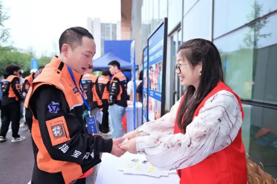 以榜样凝聚力量,以宣讲传递匠心。大赛开幕式上,成都市五一劳动奖章获得者、淘宝闪购配送员刘晓东受邀分享成长故事。他先后斩获成都市、四川省网约配送员职业技能大赛第一名,拿下第三届全国网约配送员职业技能大赛金奖,深耕行业、精益求精,用亲身经历生动诠释“干一行、爱一行、精一行” 的工匠精神,为广大新就业群体劳动者树立了标杆榜样。 此外,赛事同步打造“暖新集市区” 服务阵地。现场还特邀国家注册安全工程师、安全评价师张跃,围绕新就业群体职业伤害保障政策、电动车交通安全知识开展专题宣讲,帮助配送从业人员强化安全防范意识、提升自我保护能力,筑牢安全从业防线。新都区总工会及各协办单位现场提供政策解读和各项暖心服务,发放普法宣传资料,面对面解答劳动保障、权益维护等热点问题,同步提供职工入会咨询、心理健康疏导等服务,切实把关怀与服务送到新就业群体身边。